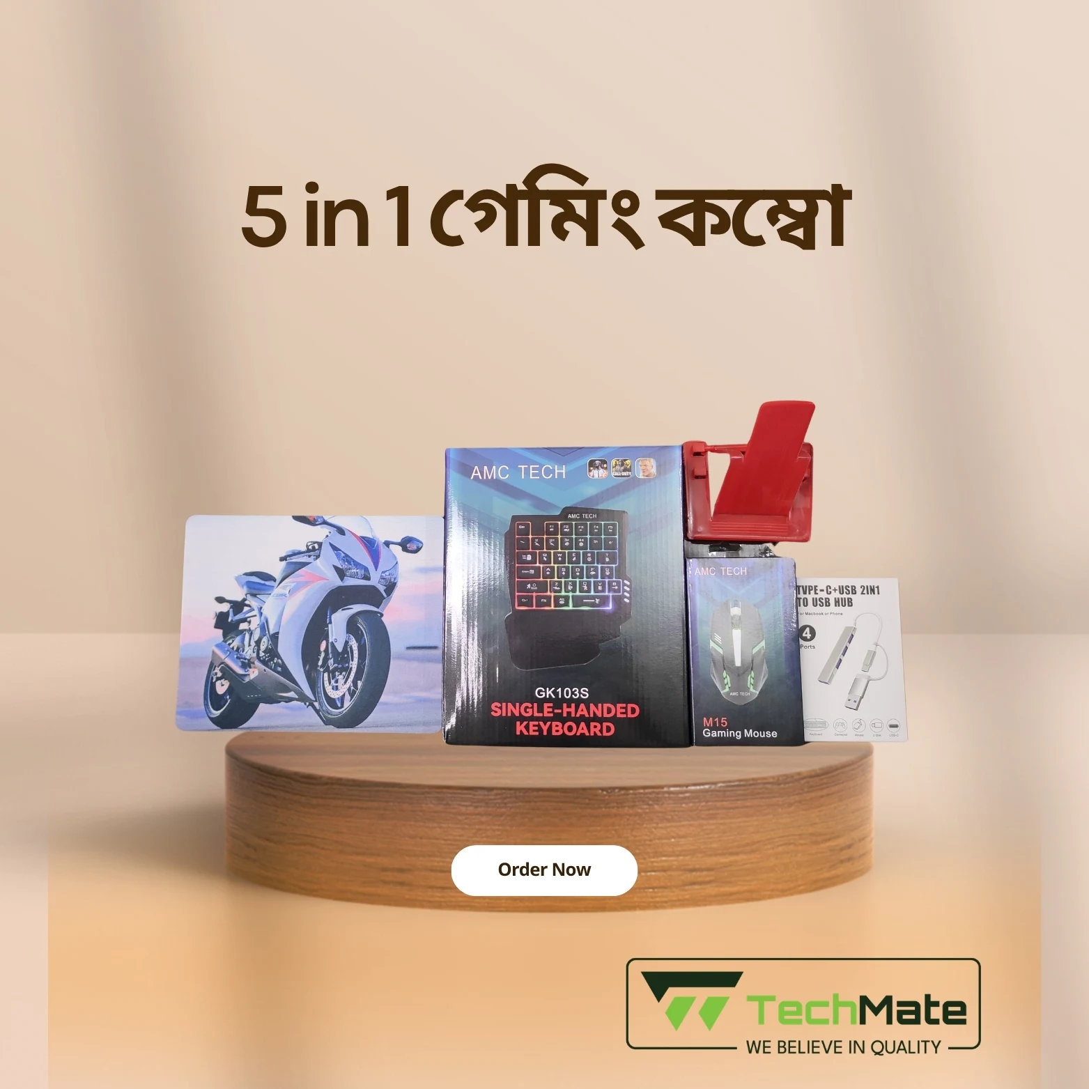 এই powerful combo packটি specially design করা হয়েছে PUBG, Free Fire, Call of Duty Mobile gamers-দের জন্য। এতে রয়েছে single-handed gaming keyboard, gaming mouse, converter, mobile holder ও OTG hub, যা আপনাকে দেয় smooth control এবং ultra-fast response।