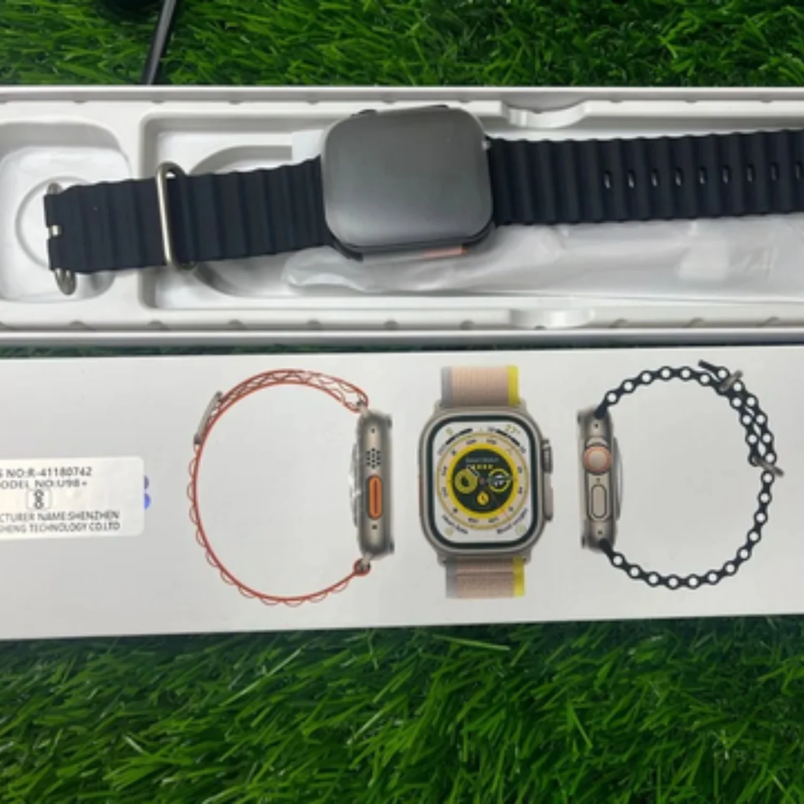 Stylish “Ultra” design (Apple Watch Ultra look-alike) এটিকে premium look দেয়—daily wear ও fashion-এর জন্য perfect।