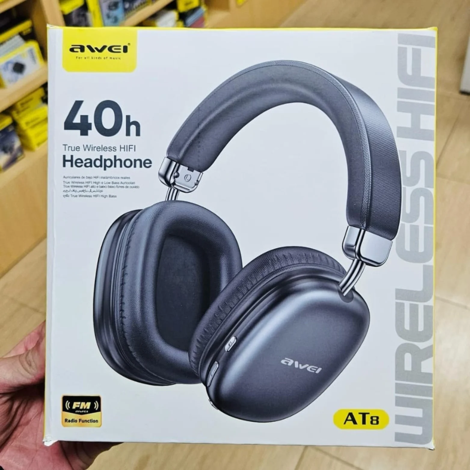 Awei AT8 Headphone – Bluetooth 5.4, 40mm driver, deep bass sound ও 40 ঘণ্টা battery backup সহ stylish wireless headphone।