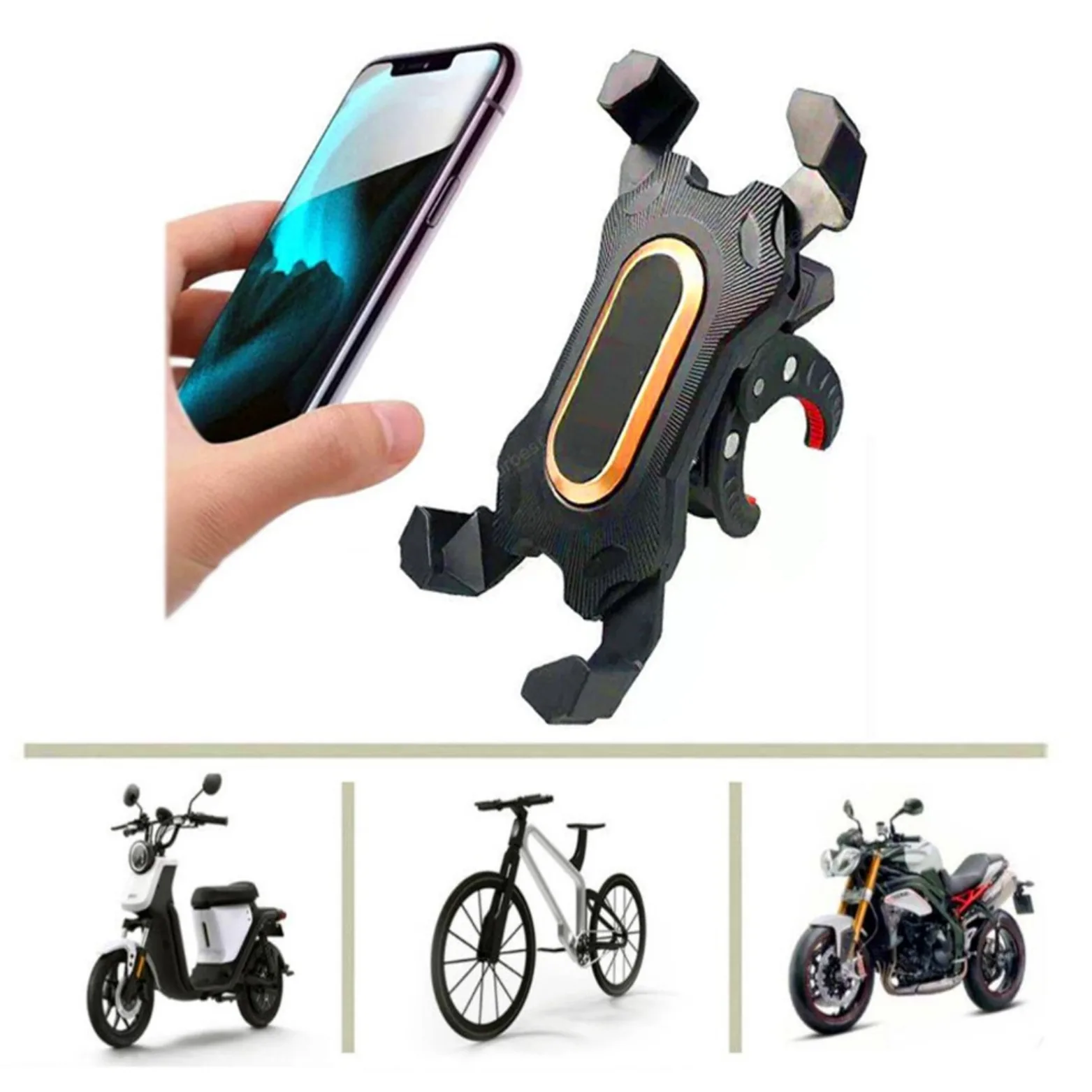 এই mobile holderটি universal design হওয়ায় প্রায় সব smartphone-এর সাথে compatible। Adjustable clamp system থাকার কারণে আপনার phone securely hold করে—road vibration বা ঝাঁকুনিতে পড়ে যাওয়ার ভয় নেই।